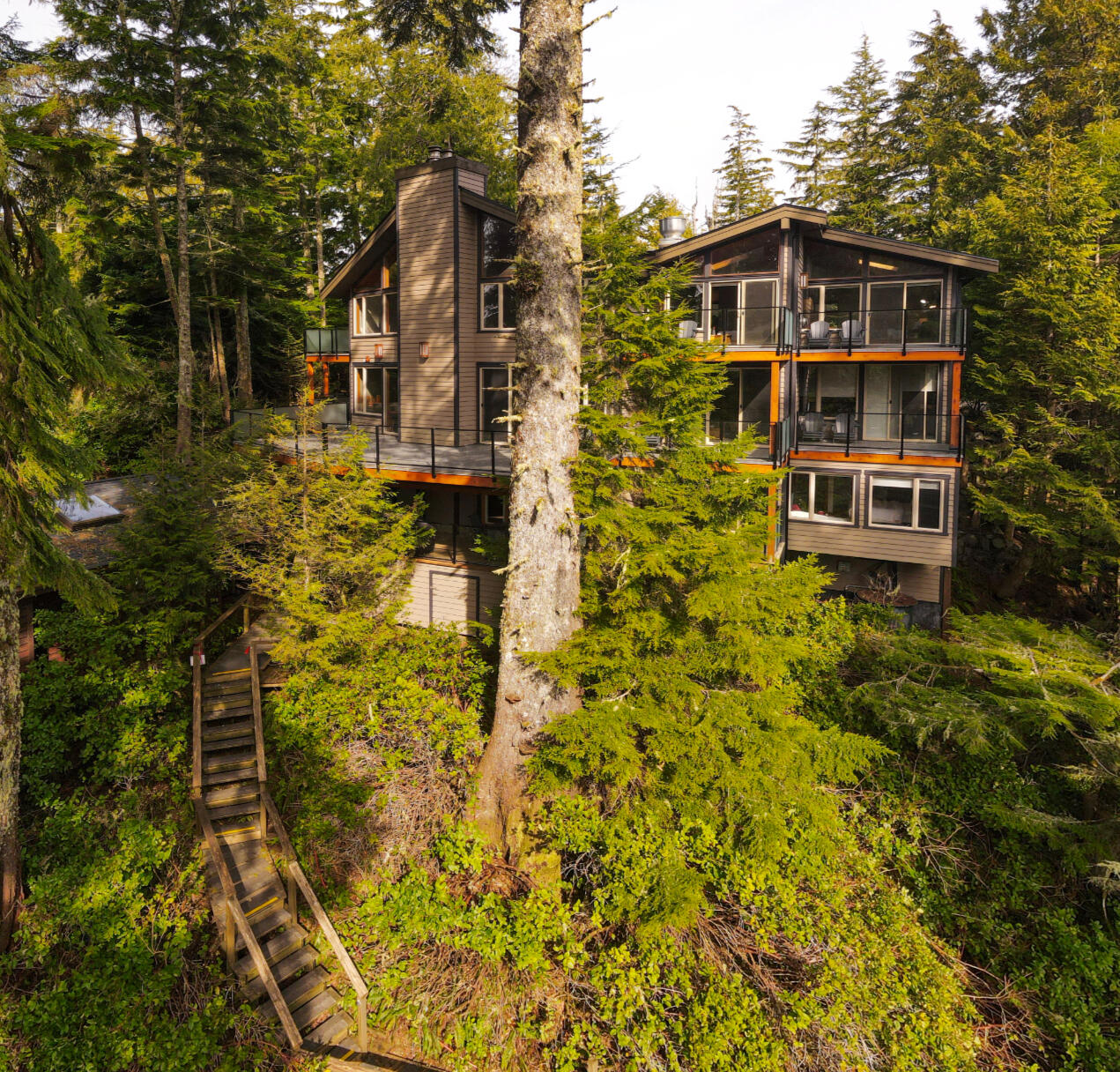 On the bottom of the Lodge is a west coast hidden gem that boasts three distinct basement suites. One is a secluded 1500+ sq ft haven, featuring three bedrooms, a well-appointed kitchen, and a luxurious steam shower, all enveloped by breathtaking rainforest and beach views. The second suite, offers a cozy, clean space with a queen bed and access to the shared Great Room. The third suite is a 500 sq ft sanctuary equipped with a full kitchen, a premium king-size bed, and a bath and stand-up shower. All just a short stroll to the beach and the trail. Each suite embodies the serene beauty and warmth of the West Coast.